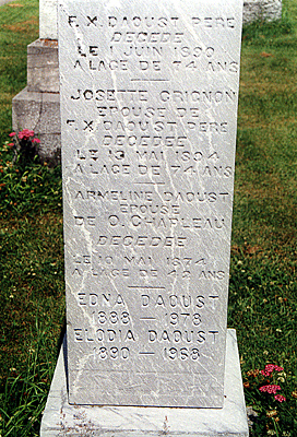 He was a great uncle to our father, Jean Guy Daoust. Resting with him are his wife - Josette, his mother - Marie Louise Sicard - his son Francois Xavier and the latter's two wives etc Francois, senior was